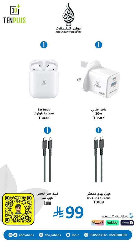 عرض شاحن جداري بمنفذين بقوة 30W واط سنتين + سماعة ايربودز بلتوث ضمان سنتين + كيبلين على حسب اختيارك ضمان 10 سنوات