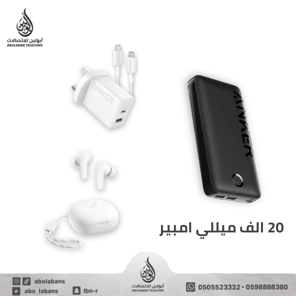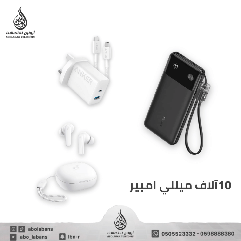 بكج انكر 3 في واحد باور بانك 10آلاف ميلي امبير وكيبل وفيش جداري وايربودز